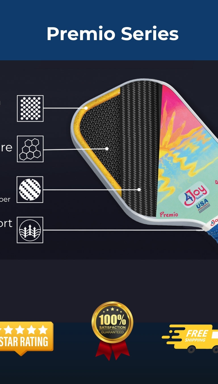High-Tech Design: Each paddle is engineered for advanced-level play, combining cutting-edge materials with innovative features to give players control, power, and consistency. Premio Series paddles are heat pressed Unibody Thermoformed foam injected edge integrated into the handle with T700 Carbon Fiber face for lightweight tensile strength and a textured surface for spin and ball grip.
